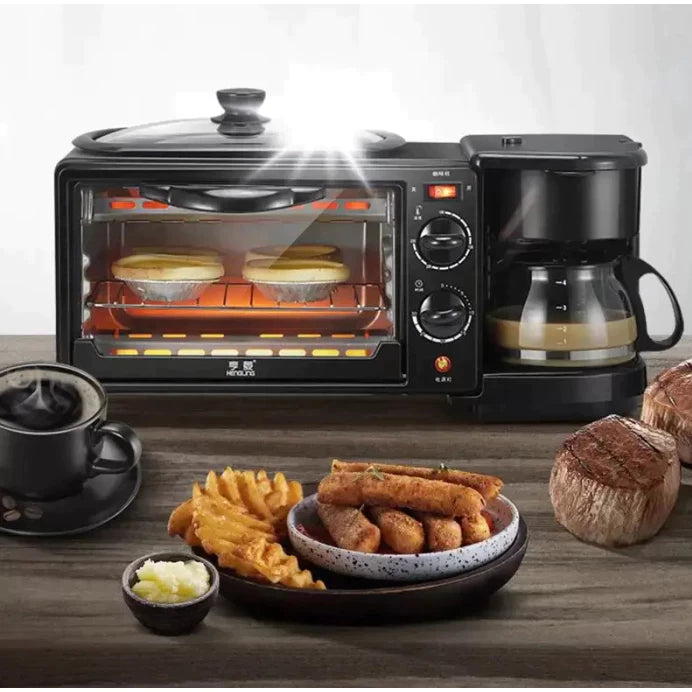 “Tu cocina completa en un solo electrodoméstico: hornea, asa y prepara café al mismo tiempo.”